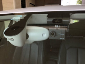 まず、カメラをミリ波レーダーの妨害にならない位置へ両面テープで固定します。(上の写真)