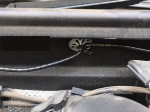 ワイパー付近は貼り付ける所が無いため、インシロックで飛び出ているボルトを利用して固定します。(下の写真)