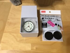 マジックテープ(両面ファスナー)のサイズは35mmで時計の裏側にぴったりです。アナログ時計の取り付け完成です。