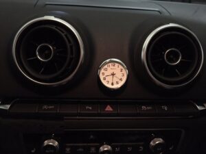 最近の車はナビに時計が表示されるので車内に時計がなくっなってしまった。高級車は別みたいですが、アウディーA3もメーター内に小さくデジタル時計の表示があるだけです。ずっと前からアナログ時計を取り付けたと考えていました。今回、アナログ時計を取り付けることにしました。